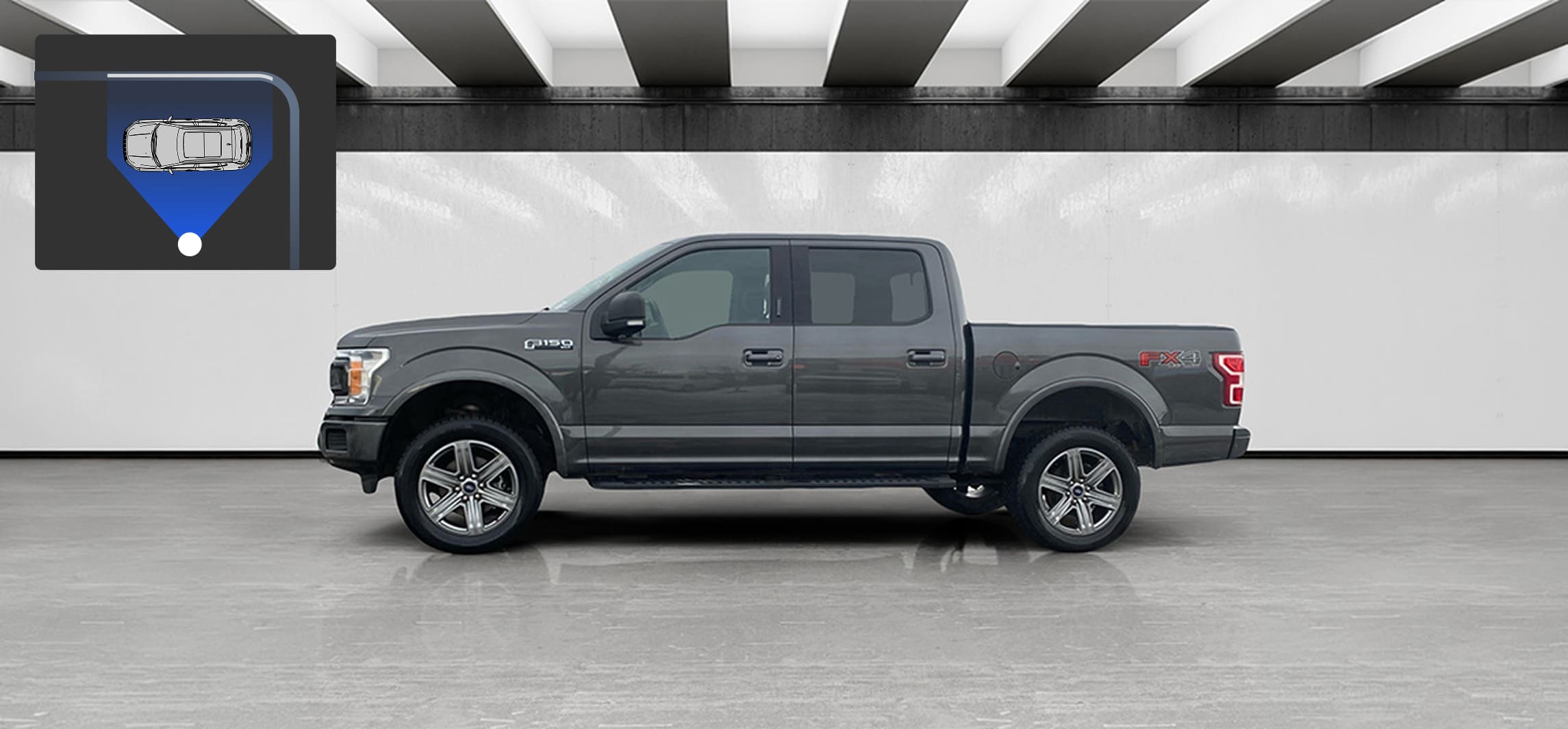As your vehicle shifts angle, so does the showroom. Our backgrounds